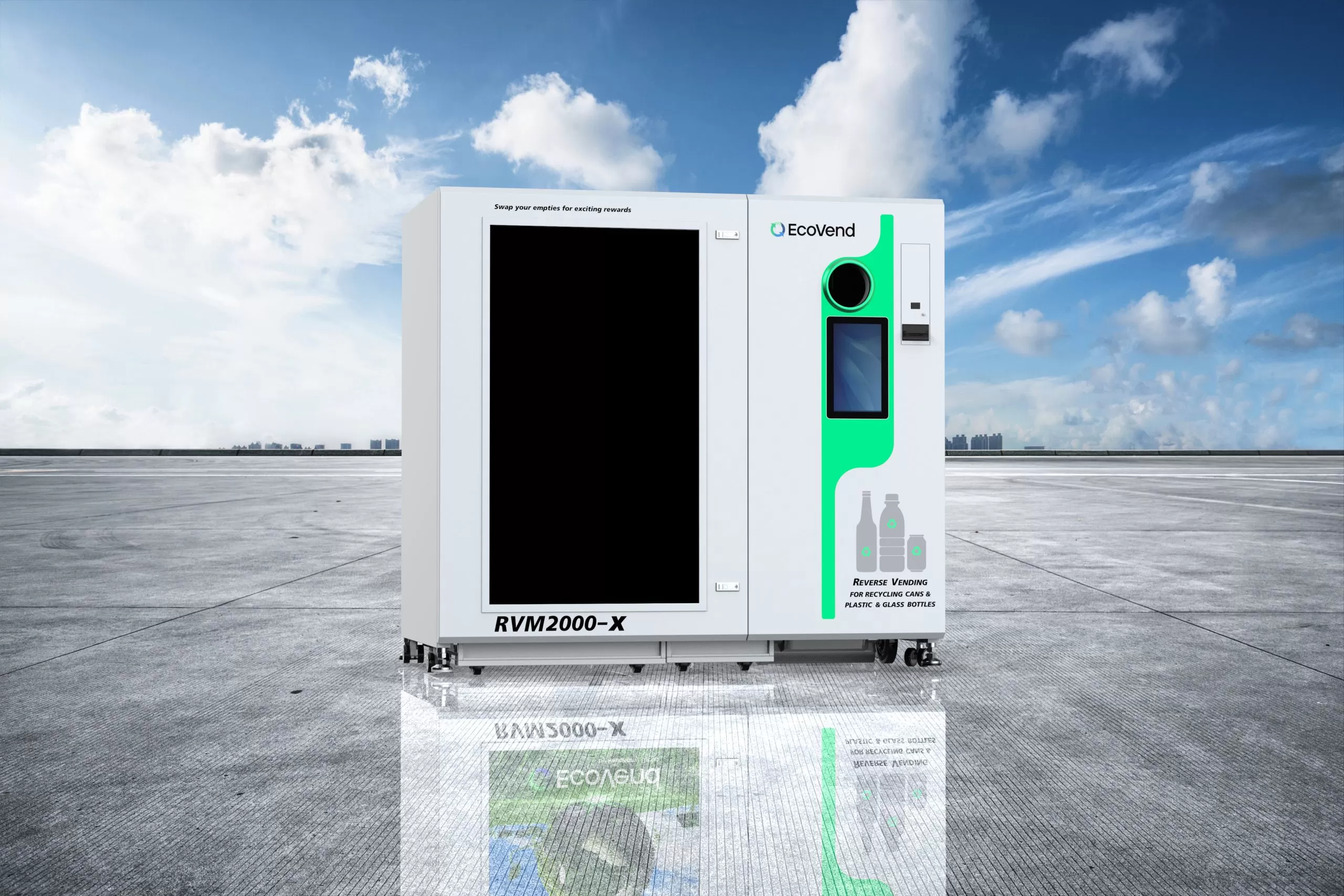 RVM model 2000XVP fabricat de EcoVend (Marea Britanie) este perfect pentru companiile și rețelele medii sau mari, care au mai multe fluxuri de deșeuri, deoarece mașina are capacități superioare de preluare a cutiilor, dozelor de aluminiu, de preluare a sticlelor de plastic PET și de preluare a recipienților din sticlă. Datorită capacităților sale, plasat în locul potrivit, echipamentul este și un mijloc eficace pentru publicitate.